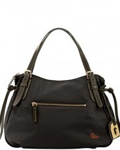 Dooney & Bourke Large Nina, Nylon. One outside zip pocket. One inside zip pocket. Cell phone pocket. Inside key hook. Strap drop length: 9″. Zipper closure.