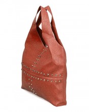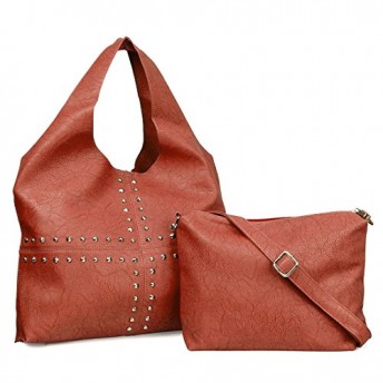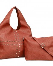 BMC Cute Hot Rod Red Faux Leather Gold Studded Design 2-in-1 Summer Tote Fashion Shoulder Bag Combo