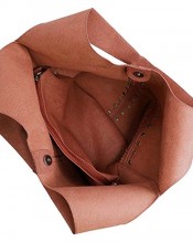 Tote closure: magnetic snap. Shoulder bag interior: three pockets with zippered closure.