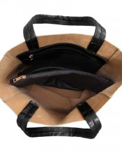 Interior: Tan faux leather and has zippered pocket inside.