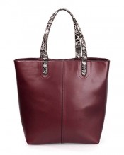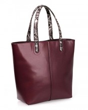 BMC Womens Wine Red PU Leather Faux Snakeskin Top Handle Fashion Tote Canvas Purse Handbag Set