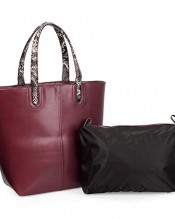 This is a stunning wine red faux leather tote bag with faux snakeskin handles and an added insert bag. The canvas insert bag can be secured in the tote by strapping the bag onto the interior pegs. Both bags are lined with fabric and feature a branded b.m.c patch. The bag set has more than enough room for all of your necessities and both bags feature pockets to help keep you organized. This fashionable bag is great for everyday use. *NOTE*: Due to differences between monitor displays, actual color may vary slightly from image. b.m.c is a registered trademark of Remi Collections LLC and is exclusively distributed by Bundle Monster. The b.m.c trademark is protected by US Trademark Law.
