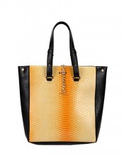 Classy Faux Crocodile Leather CarryAll Tote Handbag-Yellow