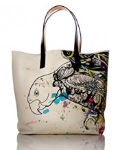 Diorama Concept Leather Women Handbags-Vivid Parrot Graphic-Very Limited edition tote bag