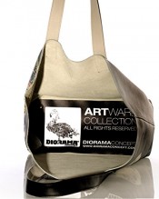 Luxury bags from the artware UK based, brand Diorama Concept featuring unique art print by graphic artists. This full leather shoulder bag is part of “Fragments of a painted life” collection by visual artist Anca Ignatescu.