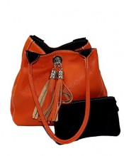 Giglio Soft Italian Leather and Suede Handmade Reversible Shoulder Bag (Orange and Black)
