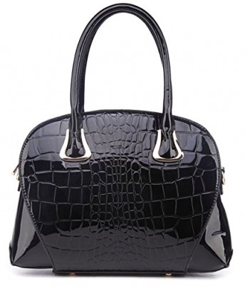 Ladies Black High Gloss Mock Croc Tote Handbag