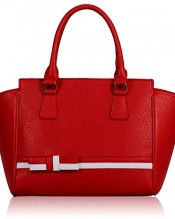 Stylish Womens Ladies Celebrity Fashion Grab Tote With Bow Tie Detail (TI0064) (Red)