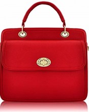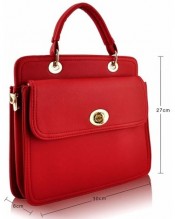 Stylish Womens Ladies Celebrity Fashion Tote HandBag With Large Twist Lock Front Pocket (TI0024) (Red)