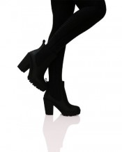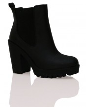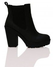A4H Womens Ladies High Heel Elasticated Panels Pull On Ankle Boots Shoes Size Black Size 4 UK