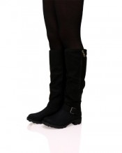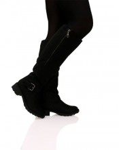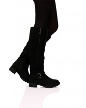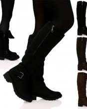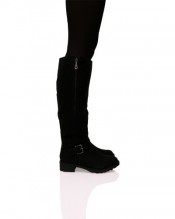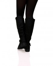 B4G Womens Ladies Knee High Boots Low Flat Heel Zip Up Buckle Detail Shoes Size Blacks Black Matte Size 6 UK
