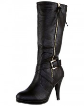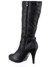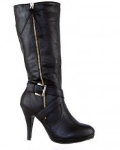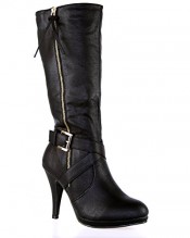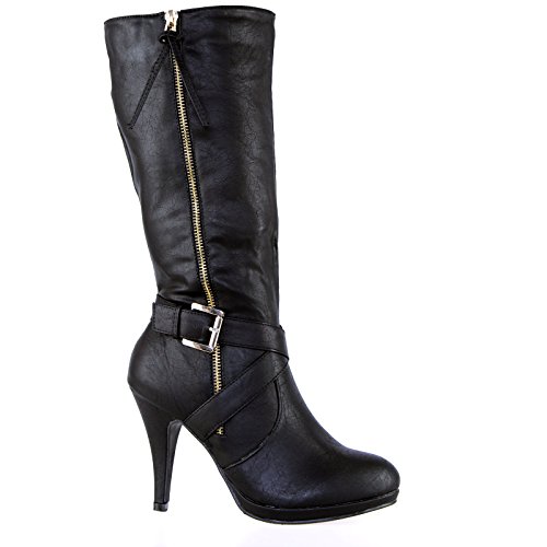 ByPublicDemand A4D Womens High Heel Zip Biker Fashion Mid Calf Boots Black Faux Leather Size 6 UK