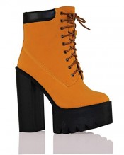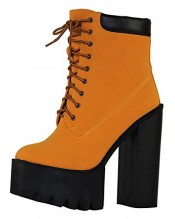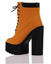 ByPublicDemand B3F Womens Block High Heel Cleated Sole Ankle Boots Honey Camel Faux Leather Size 4 UK