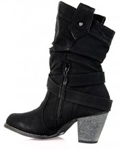 ByPublicDemand B5E Womens Mid High Heel Cowboy Ankle Boots Black Faux Leather Size 6 UK