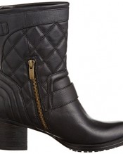 Toughen up your AW14 look a little with these chic biker-inspired ankle boots. Quilted black leather captures the season’s trends while a burnished waxy finish adds luxe appeal. Buckle and strap detail add attitude and an inside fastening zip gives easy foot entry. The 6cm heel is ultra-wearable combined with our dual density Clarks Plus cushioning. Wear with skinnies and statement tees for day and dress up for night with a tailored blazer.