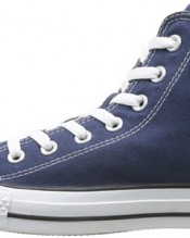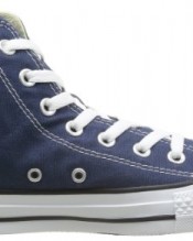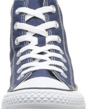 A Casual Navy Canvas Lace Up Boot With rubber Sole And Traditional Converse logo On The Inside Of The Foot.