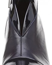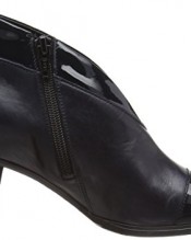 Leather upper with patent asymmetric top line and toe cap.