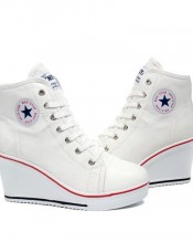 Ghope Wedges Trainers Heels Sneakers Platform High Hi Top Ankles Lace Ups Zip Boots (UK6 /EU 39, White)
