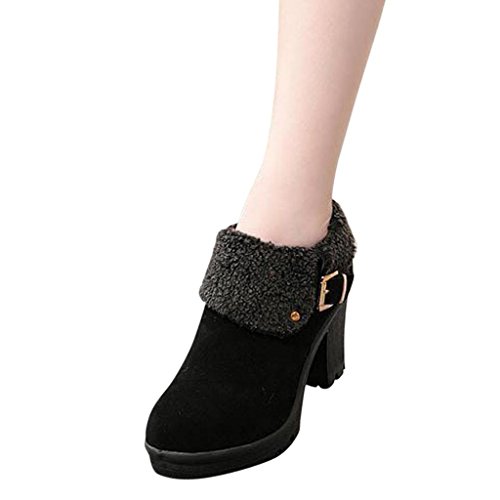 Hee Grand Women Fashion Buckle Thick Heel Winter Snow Boots Ankle Boots UK 4 Black