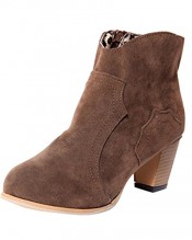Hee Grand Women Fashion Elegaant Side Zip Thick Heel Ankle Boots UK 5 Brown