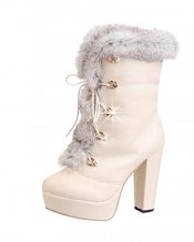 Hee Grand Women Fashion Platform Lace-Up High Heel Winter Snow Boots UK 3.5 Beige