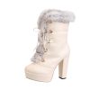 Hee Grand Women Fashion Platform Lace-Up High Heel Winter Snow Boots UK 3.5 Beige