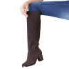 Hee Grand Women Fashion Pure Color Knee-High Thick Heel Boots UK 4.5 Brown