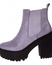 Your must have cleated Platform Boot from fashion Brand BEBO is here. This super Grey Leather Look Platform Slip On Boot with 4 inch heel and 1.75 inch platform. The seasons must have Chunky Chelsea Platform Boot!