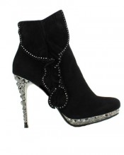 LADIES BLACK HIGH HEEL DIAMANTE FAUX SUEDE ANKLE BOOTS ZIP ON SIZE 3-8
