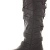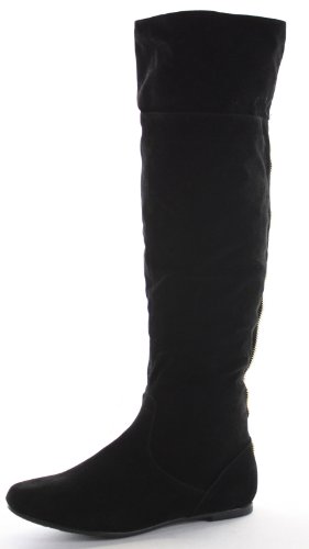 Ladies Flat Winter Biker Style Low Heel Calf High Leg Knee Boots Size – shoeFashionista Branded