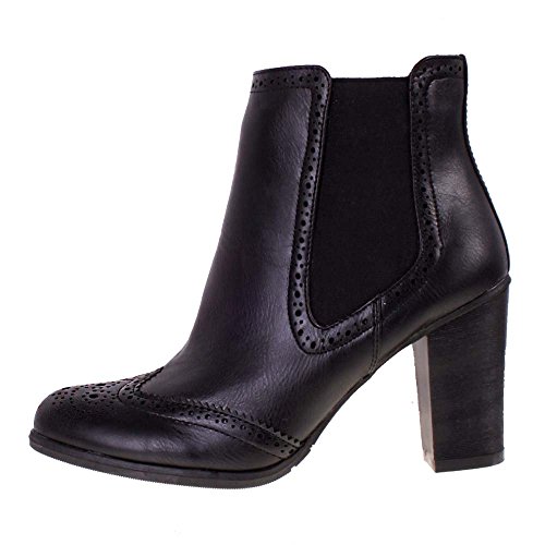 Ladies MANFIELD Black Leather Look High Heel Brogue Chelsea Ankle Boots 4