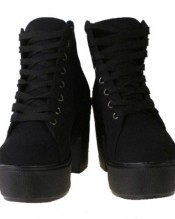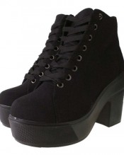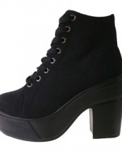 Your essential Platform Boot from fashion Brand TRUFFLE is here. This super Platform Black Canvas Lace Up Boot with 4 inch heel and 1.5 inch platform. The seasons must have Platform Boot!