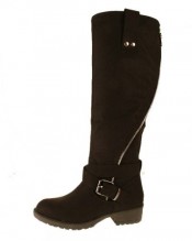 Ladies TRUFFLE Black Leather Look Zip Detailing Pull On Knee High Biker Boots 5