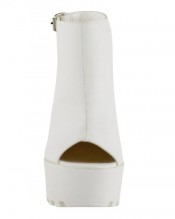 LADIES WOMENS CLEATED SOLE HIGH HEEL CHUNKY PLATFORM CUT OUT BOOTS SHOES SIZE (UK 7, White Faux Leather)