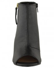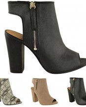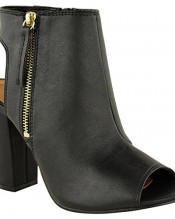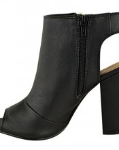 LADIES WOMENS CUT OUT BACK PEEP TOE CHUNKY BLOCK MID HIGH HEEL ANKLE BOOTS SHOES (UK 5, Black Faux leather)