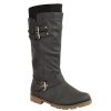 LADIES WOMENS FLAT GRIP SOLE WIDE LEG CALF KNEE HIGH WINTER RIDING BOOTS SIZE (UK 6 / EU 39 / US 8, Black Faux Leather)