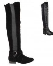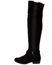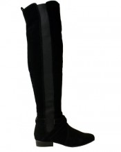 LADIES WOMENS FLAT LOW HEEL STRETCH WIDE LEG OVER THE KNEE THIGH HIGH BOOTS SIZE (UK 7 / EU 40 / US 9, Black Suede)