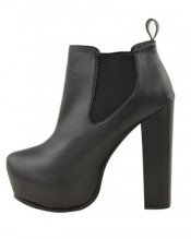 LADIES WOMENS HIGH HEEl CHELSEA ANKLE BOOTS BLOCK BOOTIES PLATFORM SIZE 3-8 (UK 6 / EU 39, Black Faux Leather)