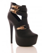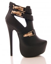 These high platform stiletto heel cut-out ankle boots combine the must have cut out design of this season with the elegance on the stiletto heel. The traditional cut-out biker chic style boot can often look clumpy and if youĂ•re a girly girl then this low block heel just won’t do. Our designers kept the girly girl in mind when adding the stiletto heel, platform and gold buckle detail to this design, you can now strut your stuff in the latest boot design whilst keeping that Rhianna Bad Girl image in tact!