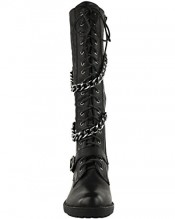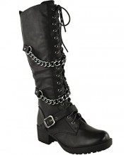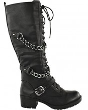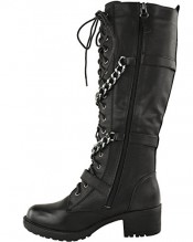 LADIES WOMENS KNEE HIGH MID CALF LACE UP BIKER PUNK MILITARY COMBAT BOOTS SHOES (UK 7, Black Faux Leather)