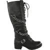 LADIES WOMENS KNEE HIGH MID CALF LACE UP BIKER PUNK MILITARY COMBAT BOOTS SHOES (UK 7, Black Faux Leather)