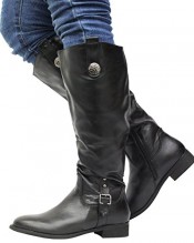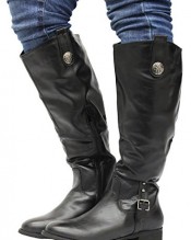 Ladies Womens Leather Style Knee High Zip Up Block Heel Studded Boots Shoes Size