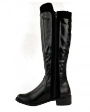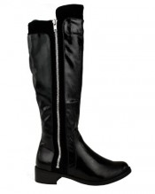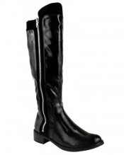 LADIES WOMENS LOW BLOCK HEEL KNEE CALF HIGH WINTER ZIP UP SNOW BOOTS SHOES SIZE (UK 5 / EU 38 / US 7, Black Patent Faux Leather / Suede)
