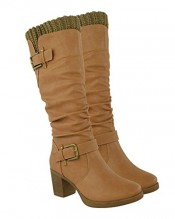 Ladies Womens Mid Block Heel Knee High Calf Warm Winter Riding Boots Shoes Size