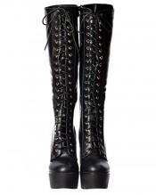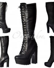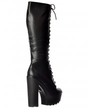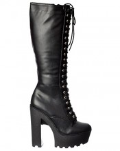 Add Attitude To Your Winter Wardrobe With These Sexy Biker ‘Rock Chick’ Boots. The Full Length Lace-up Design Teamed With High 5.5 inch Platform Heel Allow These Boots To Work in Both your Daytime and Evening Wardrobe. Choose From Black PU With Cleated Sole and Cleated Block Heel or Black Suede Finish With Block Heel.