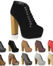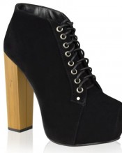 LADIES WOMENS PLAIN WOOD LOOK WOODEN BLOCK HIGH HEEL LACE UP CONCEALED PLATFORM ANKLE BOOTS BOOTIES SHOES SIZE (UK 6 / EU 39 / US 8, Black Suede)