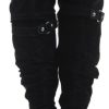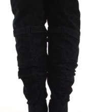 Womens Thigh High Flat Over The Knee Boots In Faux Black Suede Available In All Sizes