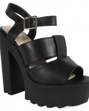 LoudLook New Womens Ladies Cleated Sole Platform High Block Heel Buckle Peeptoe Shoes Size 7