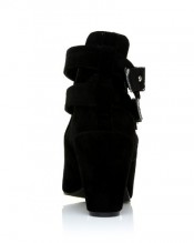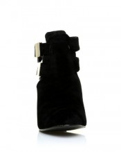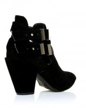 MARLEY Black Faux Suede Block High Heel Cut-Out Shoe Boots Size UK 7 EU 40