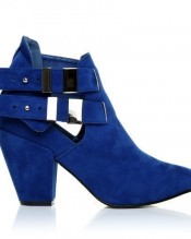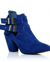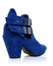 MARLEY Electric Blue Faux Suede Block High Heel Cut-Out Shoe Boots Size UK 7 EU 40